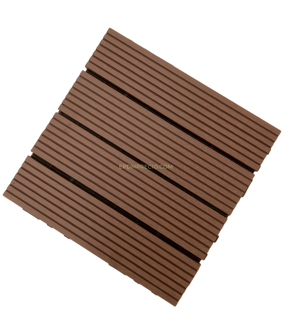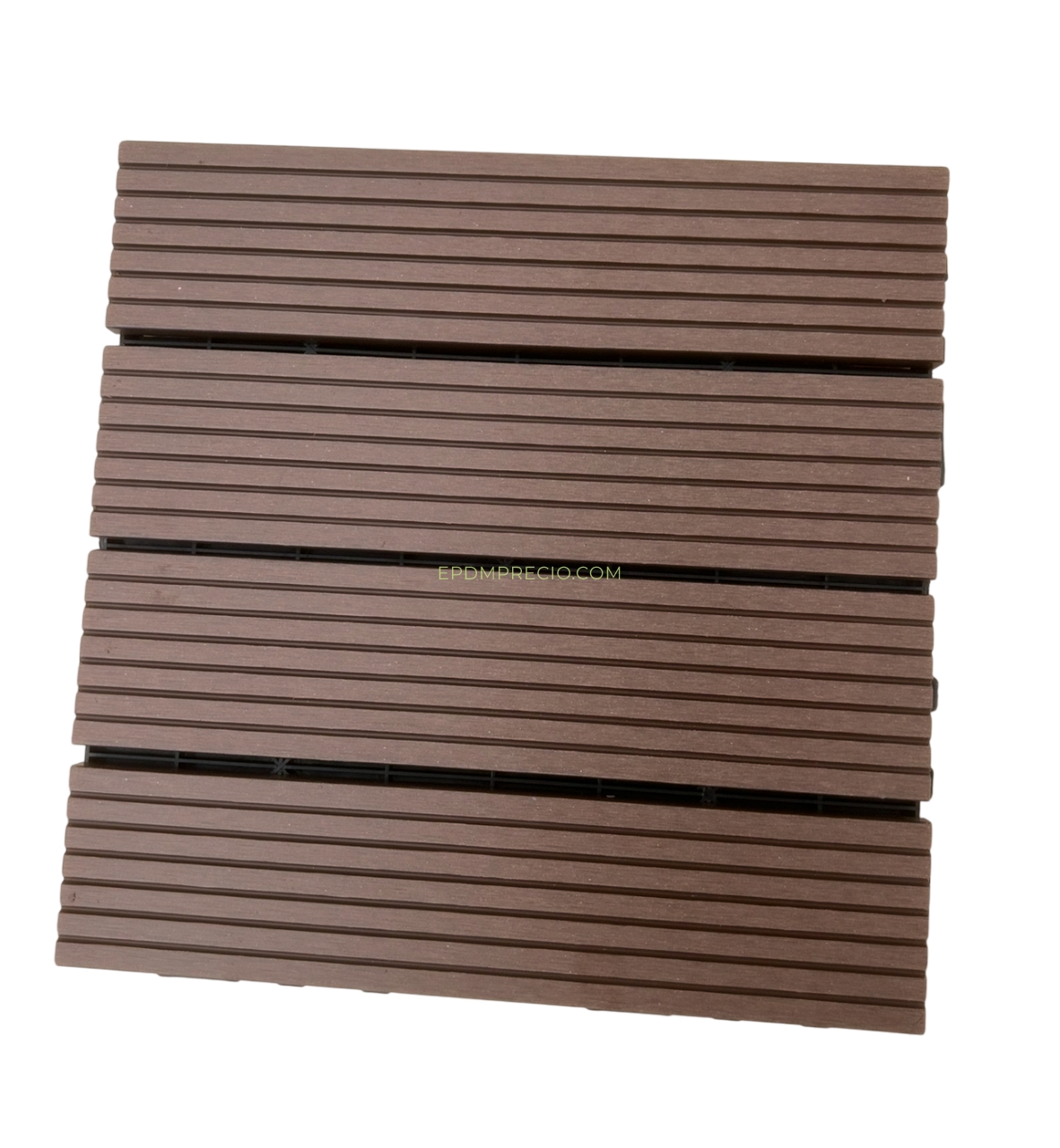 Baldosa decorativa para jardín de WPC antideslizante desmontable ideal para la decoración del jardín. Baldosas de fácil instalación en CLICK para crear multitud de combinaciones posibles. Resistenes al agua, rayos UVA y OZONO. Fácil limpieza, no absorben agua.